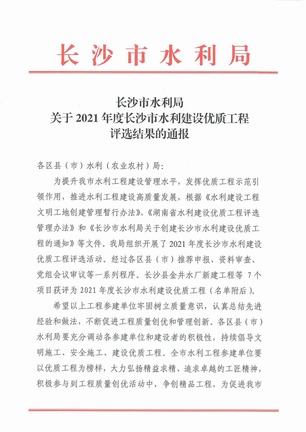 关于2021年度长沙市水利建设优质工程评选结果的通报.pdf