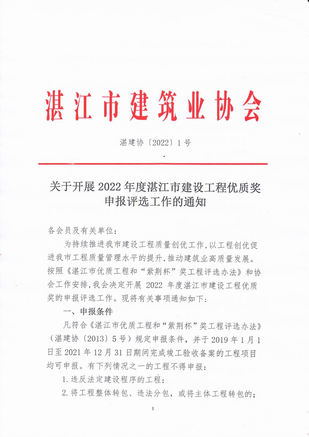 2022年度湛江市建设工程优质奖申报评选工作的通知